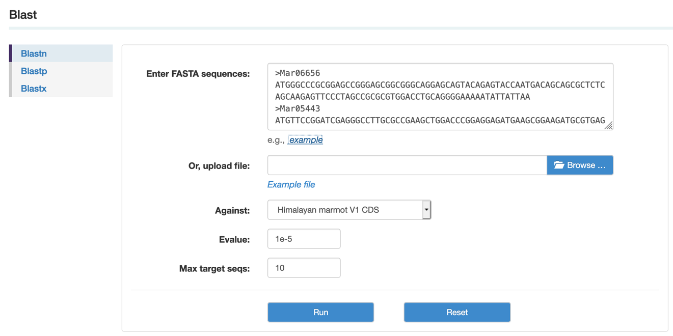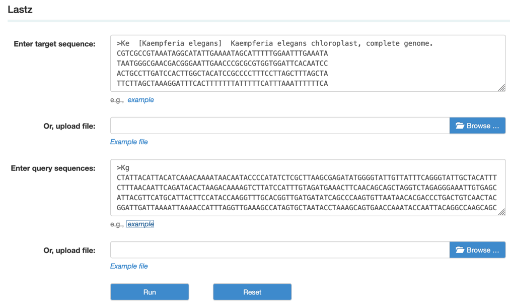 Step1: Paste or upload the target and query sequences in fasta format as example file