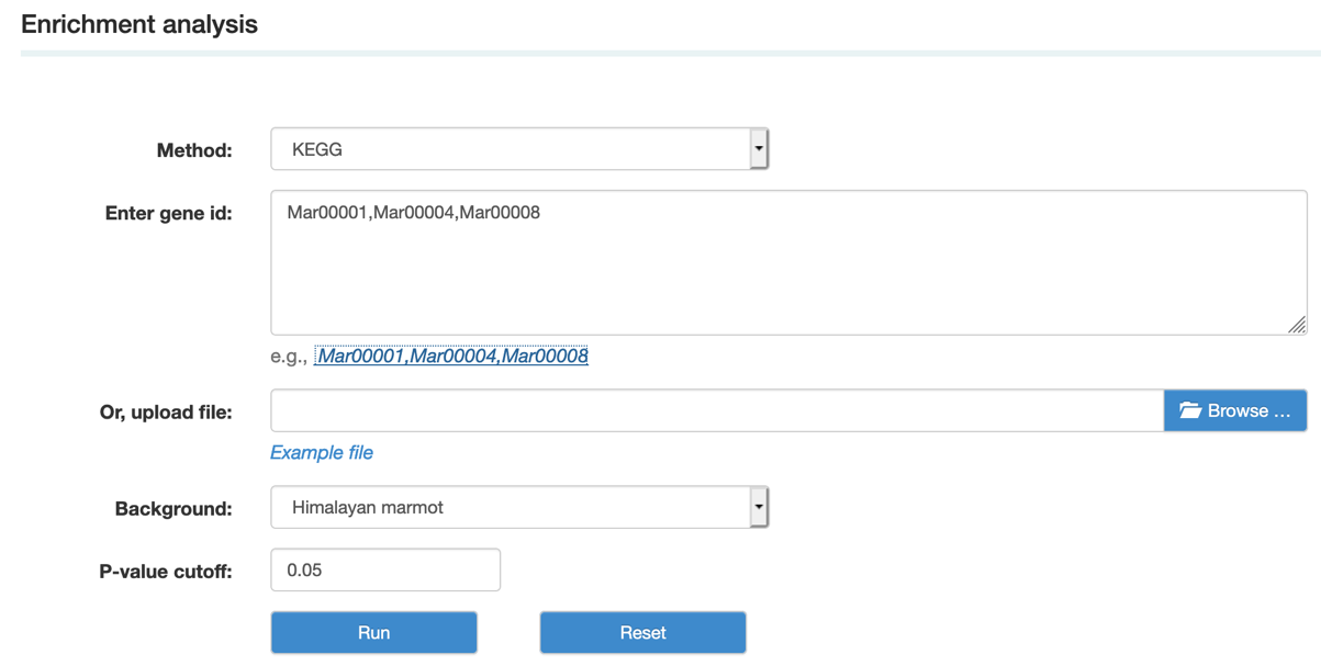 Step1: Select the method and background species, paste or upload gene IDs, and set the P-value cutoff.