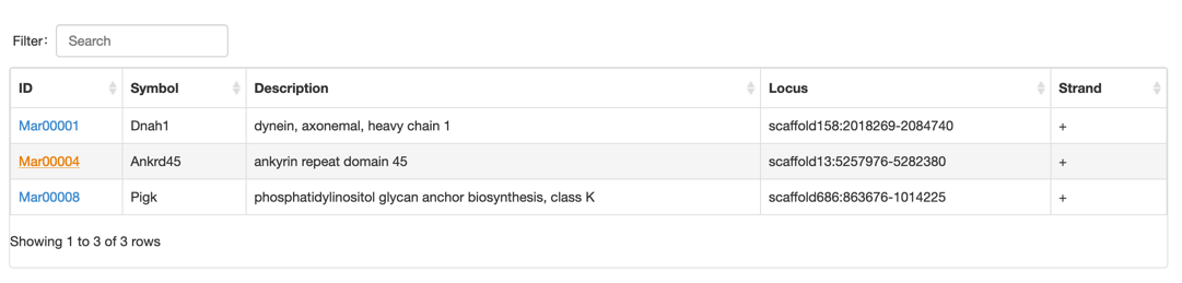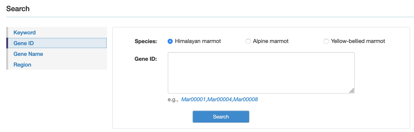 On the search page, we provided a “one-stop” retrieval system for viewing gene information by gene ID, gene name or gene locus.