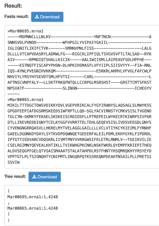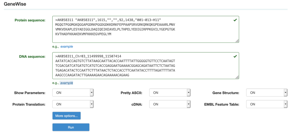 Step1: Paste or upload the protein and corresponding genomic DNA sequences in fasta format as the example.