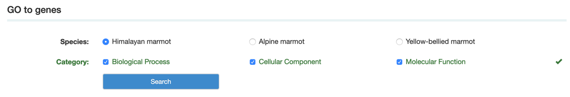 The quick search tool that users get gene information quickly through gene name on the home page.