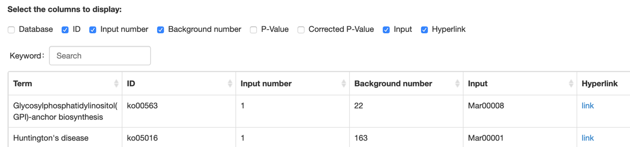 Step2: Type the keyword to search the KEGG/GO terms or select the GO/KEGG term that you want.