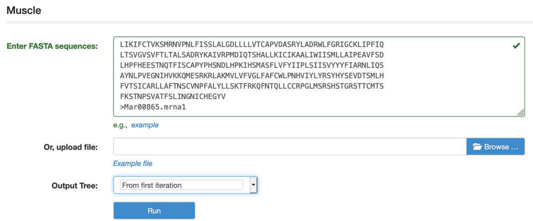 Step1: Paste or upload the sequences in fasta format as example file and select the output format