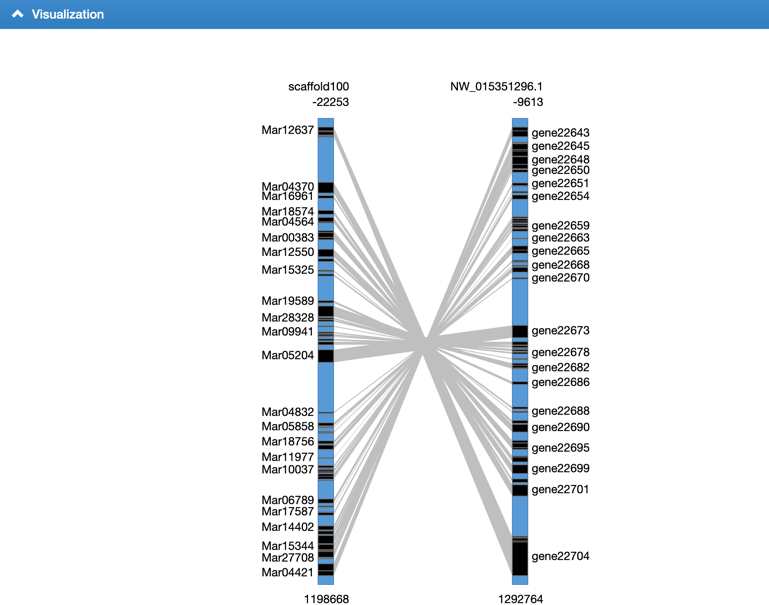 Step3: View the block information. We integrated a visualized synteny block to show the gene syntenic relationship.